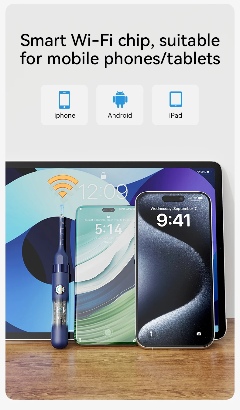 Home-Use Ear Care Kit: Our earwax removal kit with camera can be connected via Wi-Fi. Wi-Fi only connects your phone and the device, and does not support internet access, so you don’t need to worry about your data being transmitted online