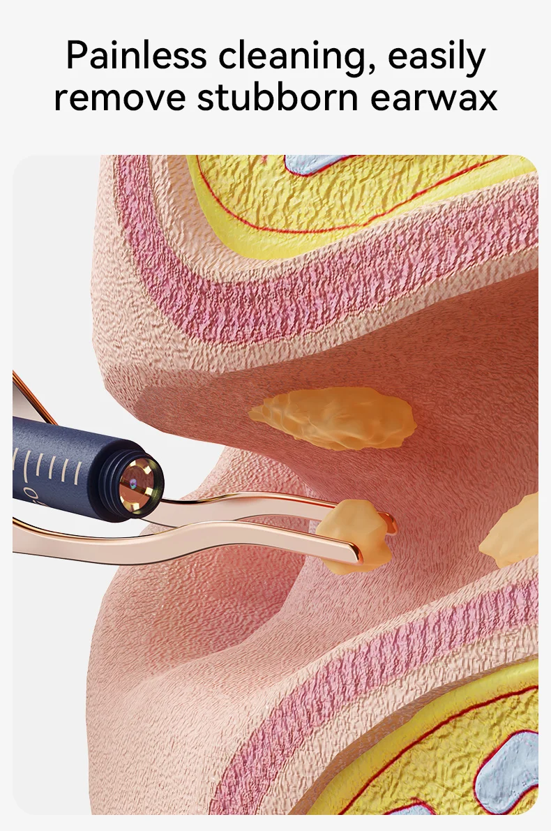 Comfortable Ear Tweezers: This ear cleaner with camera is equipped with ear tweezers, which are designed to remove stubborn earwax or debris on the ear canal wall. Compared with traditional scraping ear spoons, it is more gentle on the ear canal wall and will not irritate or hurt sensitive ear canals. Especially suitable for sensitive ear canals.